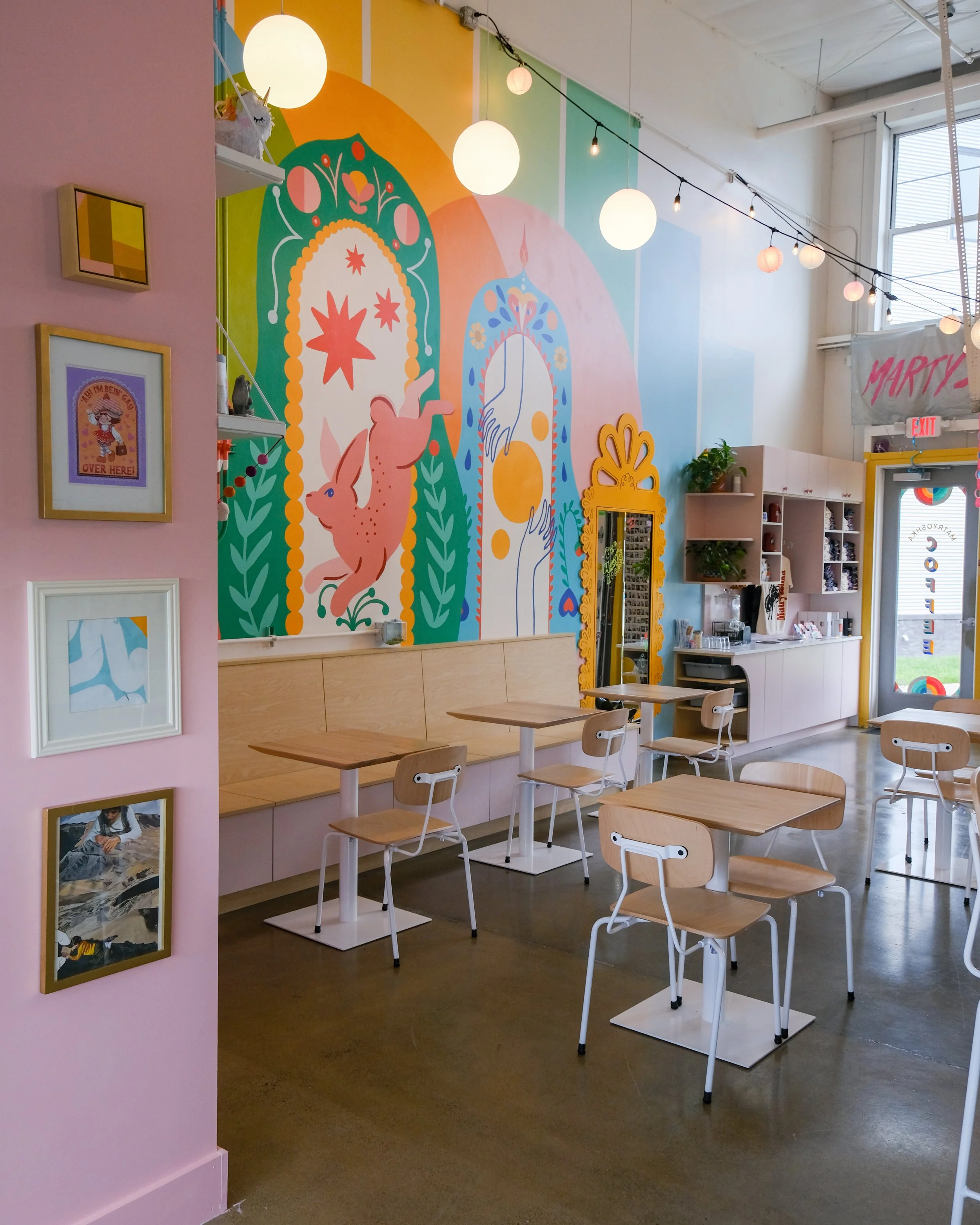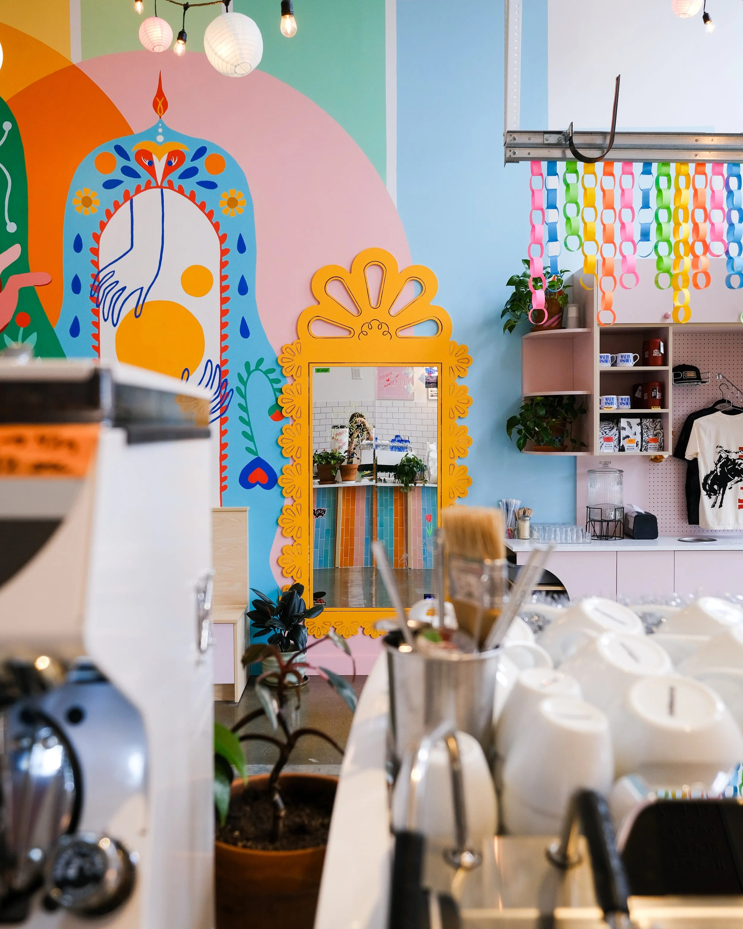 We’re an art-centric, inclusive, color-packed space where good coffee lives and smugness goes to die. We love to have fun, get creative, and put glitter on pretty much anything.